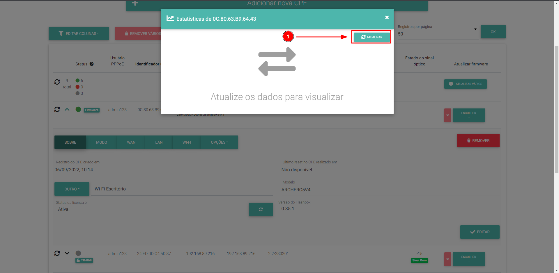 - Inicie sesión en su entorno de FLASHMAN, luego en la “inicio de FLASHMAN” localice el CPE del que desea visualizar el IPv6 de la WAN.
